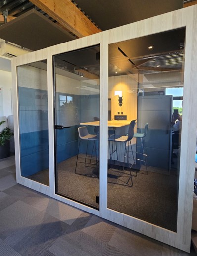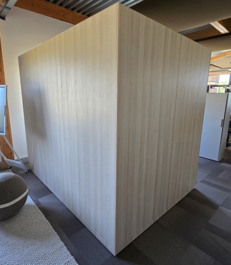 Parois acoustiques internes 5 panneaux recouverts de tissu : Cadre en tube métallique 40×20 mm, Métal revêtu à la poudre, MFC de 12 mm, Mousse acoustique (40 mm), Revêtus de tissu.